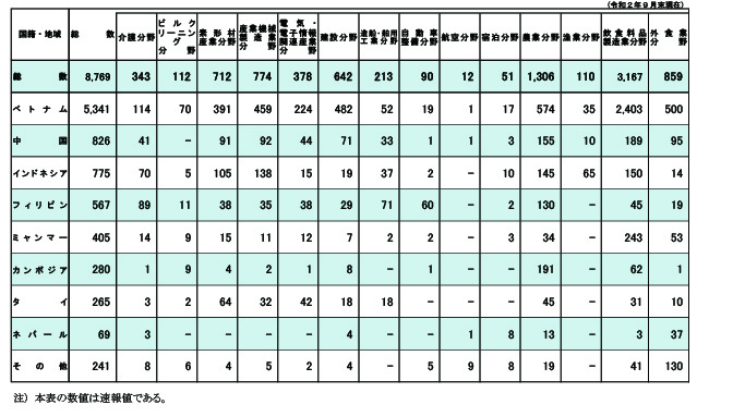 法務省より特定技能在留外国人最新人数(2020年9月時点)が公表されました。